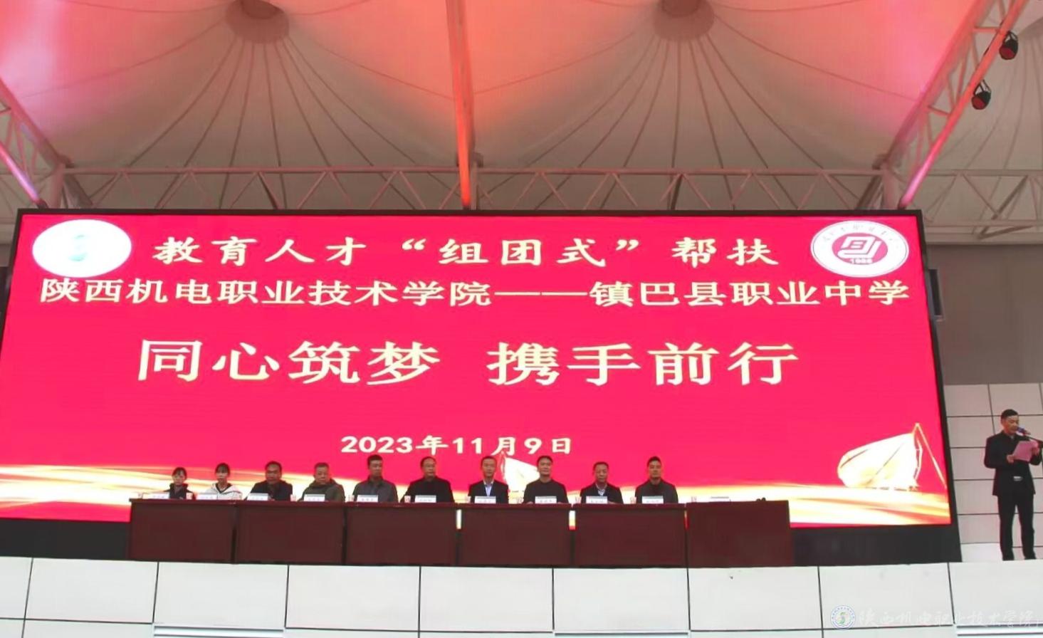 活动现场,在镇巴县职业中学全体师生的见证下,陕西机电职院向镇巴县职业中学捐赠10万元建设室内乒乓球馆。