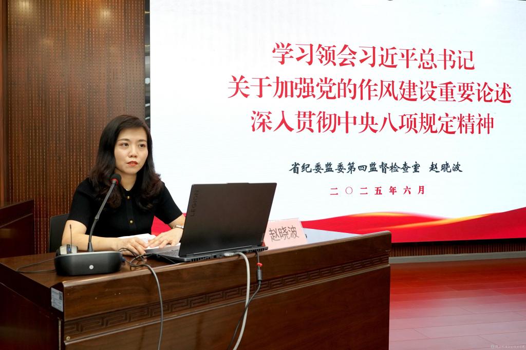 赵晓波同志围绕“深刻学习领会习近平总书记关于加强党的作风建设重要论述,切实增强开展深入贯彻中央八项规定精神学习教育的自觉性坚定性”“充分认识贯彻落实中央八项规定精神取得的显著成效,坚定打赢攻坚战持久战总体战必胜信心”“准确把握当前作风建设面临的突出问题,动真碰硬精准施治”“锲而不舍深化落实中央八项规定精神,把作风建设不断引向深入”四大主题,阐述了加强党的作风建设的重要意义、实践路径和长效机制。