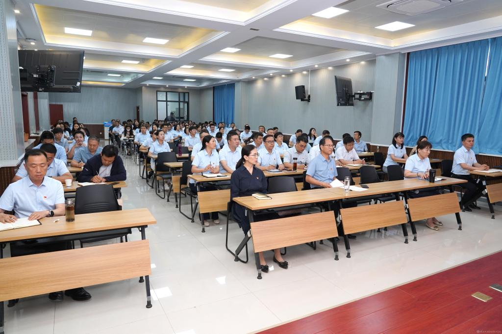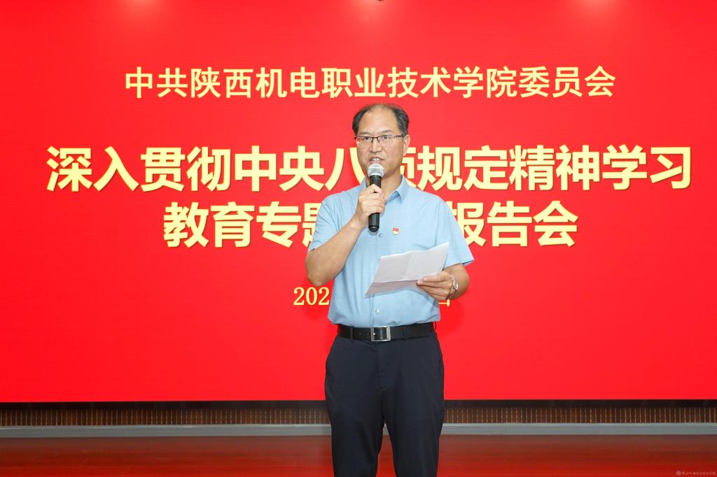 6月17日下午,学校党委在蟠龙校区博学楼111会议室举行深入贯彻中央八项规定精神学习教育专题辅导报告会,邀请省纪委监委第四监督检查室副主任赵晓波同志以《学习领会习近平总书记关于加强党的作风建设重要论述,深入贯彻中央八项规定精神》为题作了专题辅导报告。报告会由学校党委书记伊逊智主持,校领导班子成员、科级以上干部、教学部门系主任(室主任),人事处、财务处、资产管理处、后勤保障处、质控办、新校区建设办公室、教务处、学生处、保卫处等部门工作人员,全体辅导员共100余人聆听了报告。
