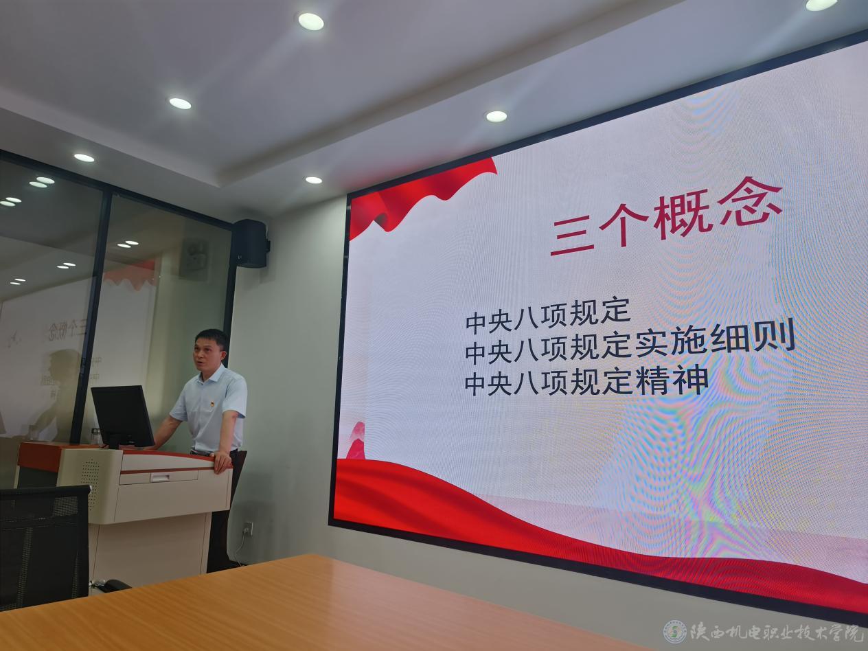 2025年6月18日上午,党委委员、院长助理、党委组织部(统战部)部长赵争东在蟠龙校区图书馆二楼思政虚拟仿真室为行政党支部、智能制造学院党支部、铁道工程学院党支部讲授题为《以严的基调深化作风建设 久久为功落实中央八项规定精神》专题党课。