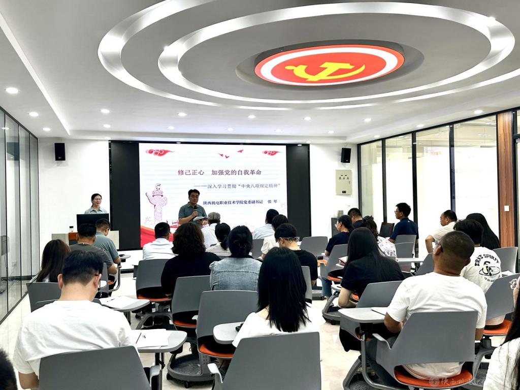 6月11日下午,一堂主题鲜明、内涵深刻的专题党课在蟠龙校区图书馆二楼模拟仿真教室开讲。校党委副书记张琴以 “修己正心 加强党的自我革命——深入贯彻中央八项规定精神学习教育”为题,为电子信息学院党支部、学生工作党支部、招生就业党支部全体党员带来了一场思想与文化交融的精神盛宴,引导广大党员深刻领悟中央八项规定精神的时代内涵与实践要求。